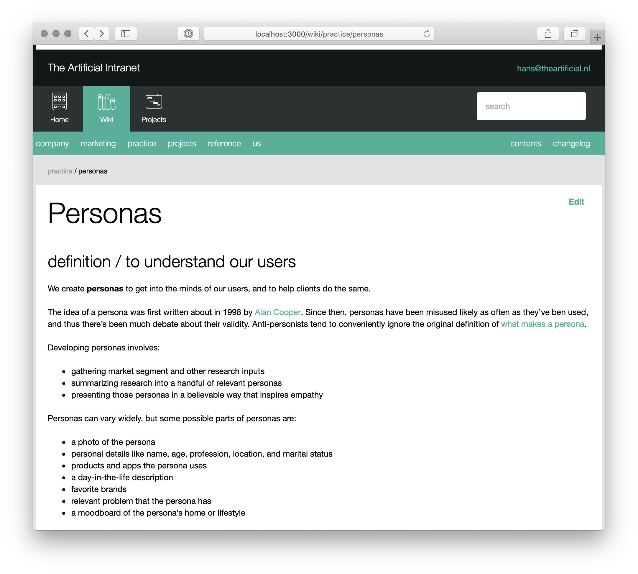 As part of this, I ended up building a Rails engine wiki tool that used git for storaage. So even though the tool has been decommissioned, aall that content survives as a git repository of markdown files, with nearly 3500 commits of history.
